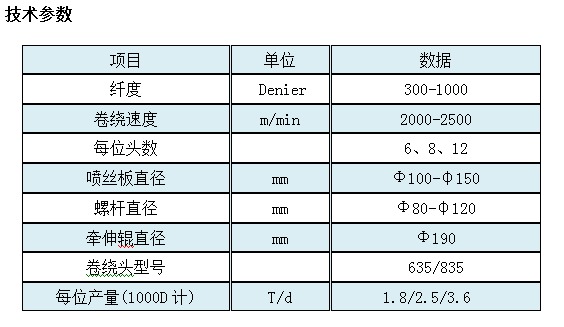 給您介紹介紹宏源丙綸高強(qiáng)FDY紡絲機(jī)的技術(shù)參數(shù)吧: